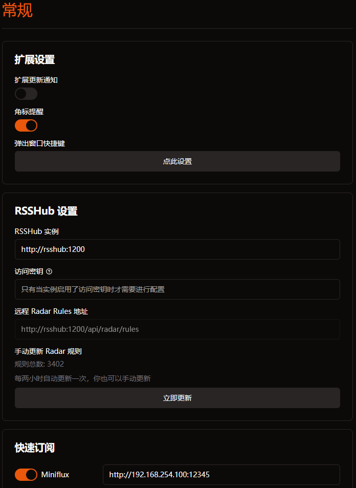 rsshub 浏览器扩展需修改实例为 http://rsshub:1200